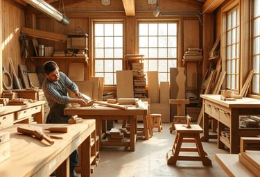 Travaux sur mesure en bois pour portes, fenêtres, escaliers et mobilier, alliant robustesse, finition soignée et esthétique personnalisée.