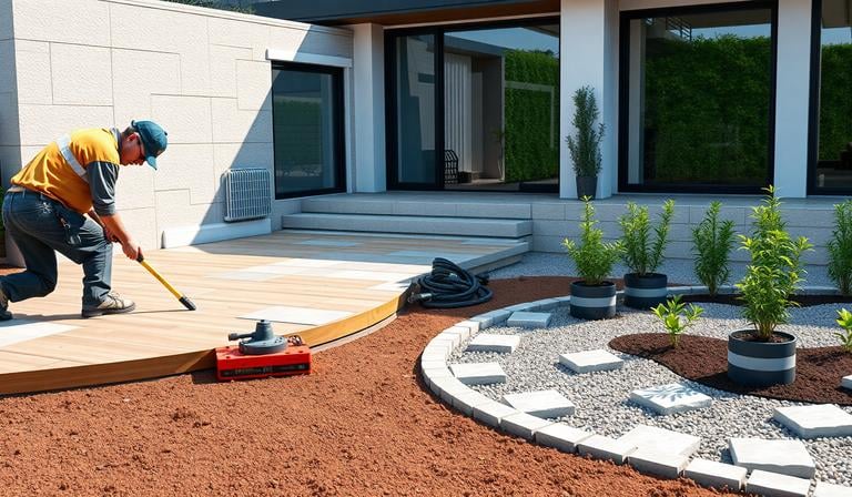 Conception et réalisation d’espaces extérieurs résistants et esthétiques : terrasses, allées, murets, clôtures, aménagement paysager et ouvrages sur mesure.