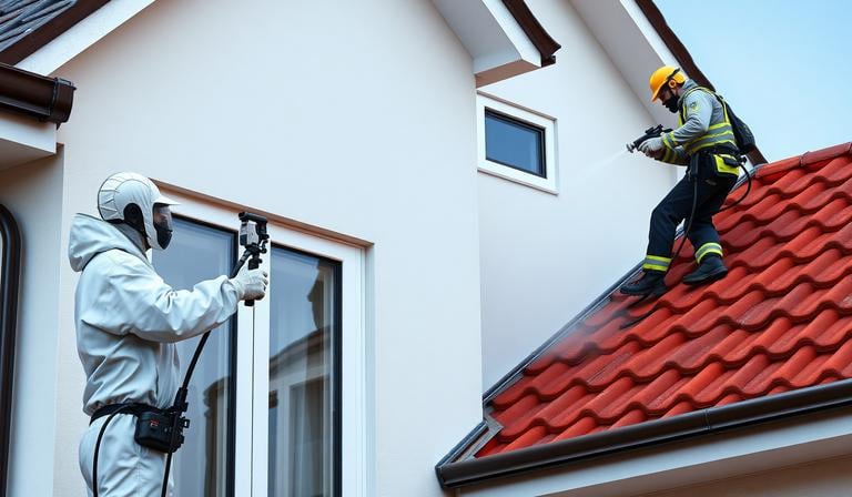 Protection durable de vos façades et toitures grâce à des traitements spécialisés et à l’application d’hydrofuge, pour lutter contre l’humidité, prolonger la durée de vie des matériaux et préserver l’esthétique de votre habitat.